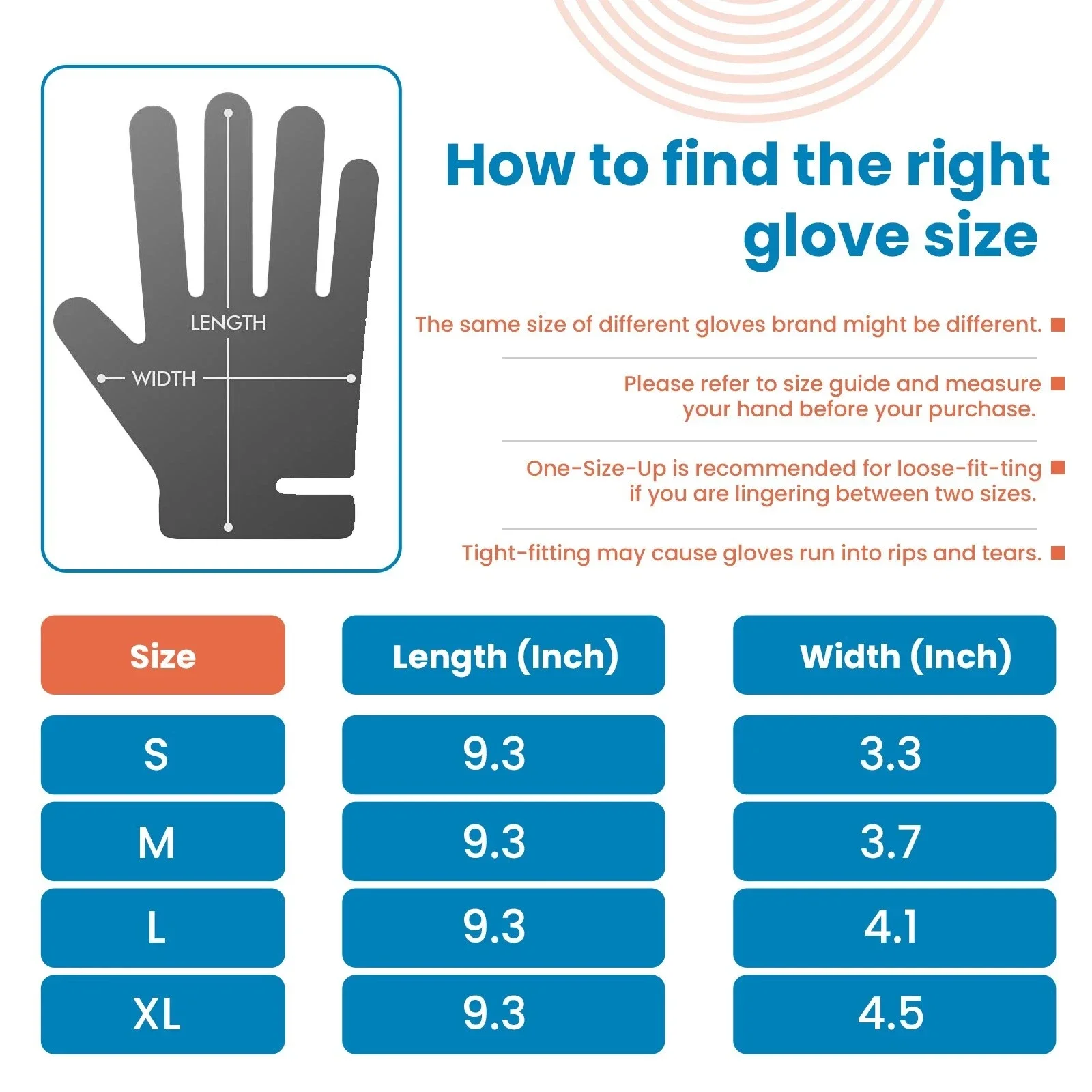 COMFORTABLE FIT: Choose from 4 sizes by referring to our size chart to find the perfect fit for you. Our gloves are made of high-quality, highly stretchable materials with excellent resilience, allowing for expansion and stretching without tearing.