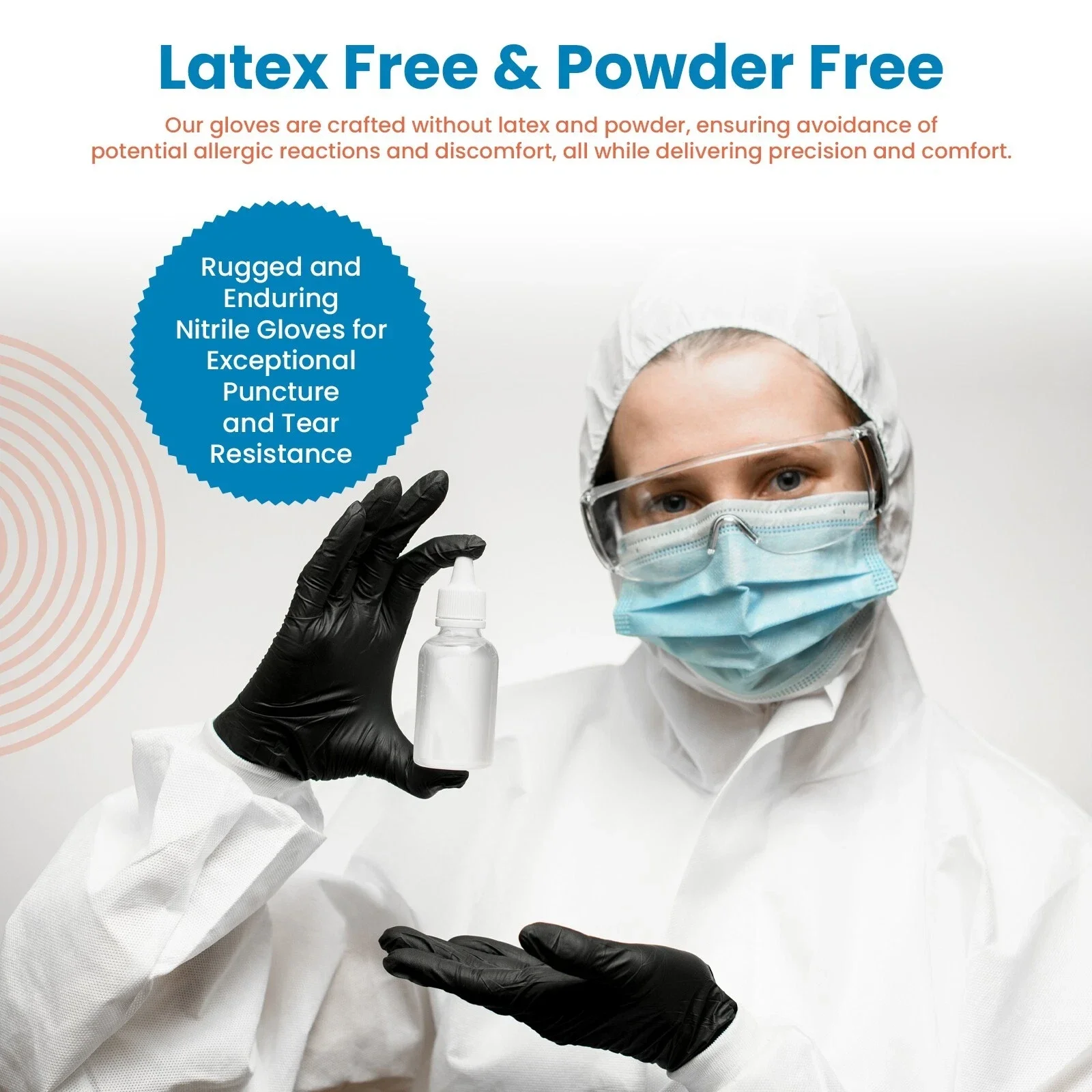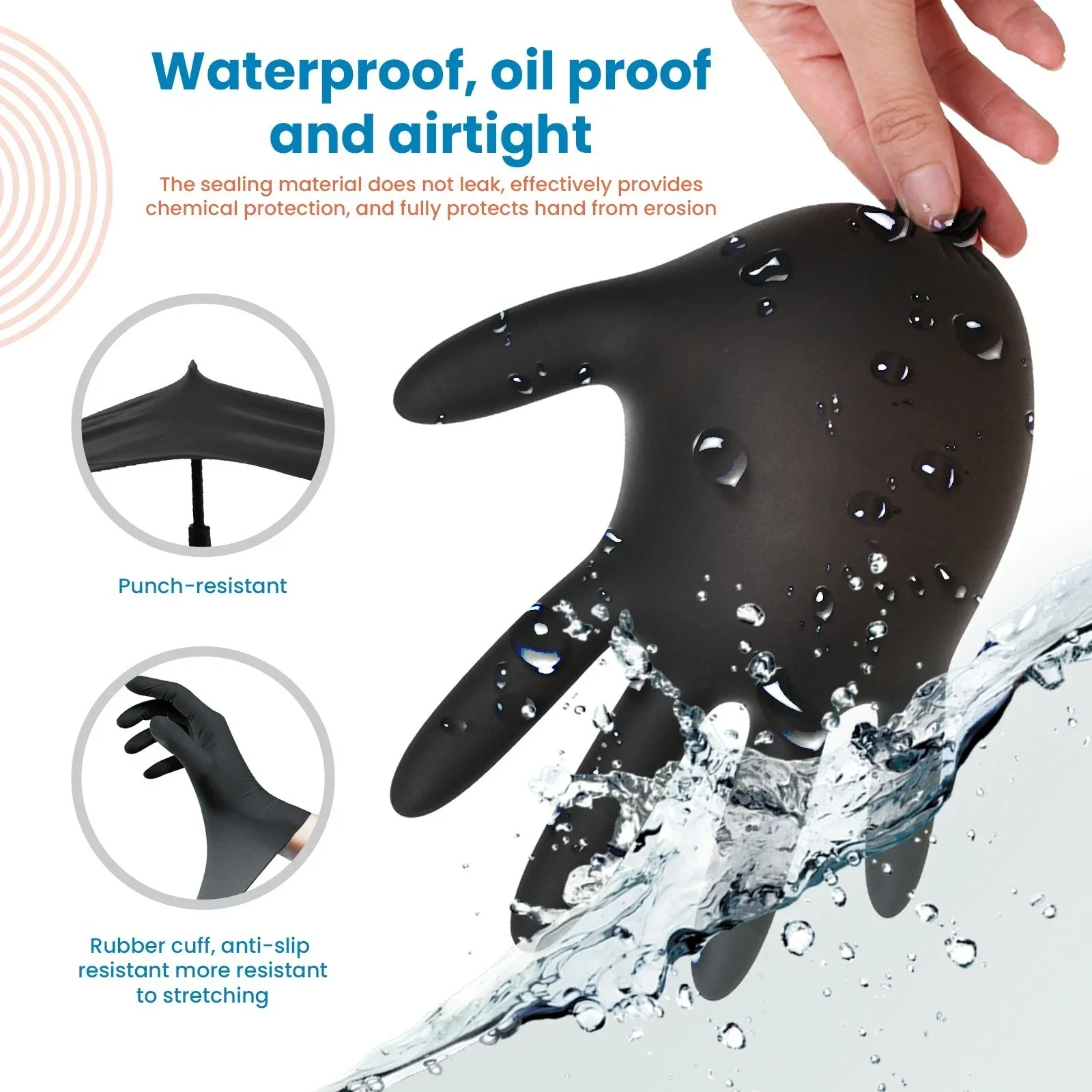 100% LATEX-FREE: Our nitrile gloves are suitable for everyone, including those with skin allergies or latex and protein allergies. They protect your hands from injuries and greasy situations without causing any discomfort. Our gloves offer chemical resistance, tear resistance, and electrical resistance, making them environmentally friendly.